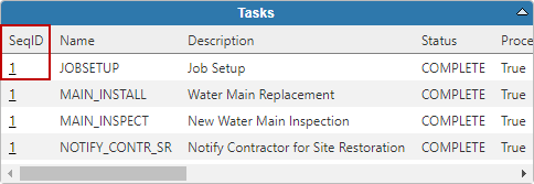 - Click the SeqID for the task you want to complete in the Tasks panel.