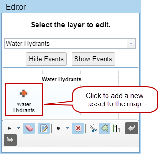 TIP: Make sure that the layer you're editing is visible in the Legend so you can view the assets on the map.