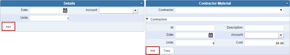 - Enter information in the Details panel or the Contractor Material panel if the material is from a contractor.
