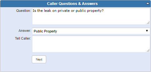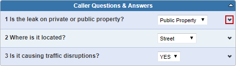 If questions and answers have been configured by the administrator in the service request template, the Caller Questions & Answers panel displays. This is to transcribe the interaction between the caller and the call taker. Questions can be set up in branch or linear format.