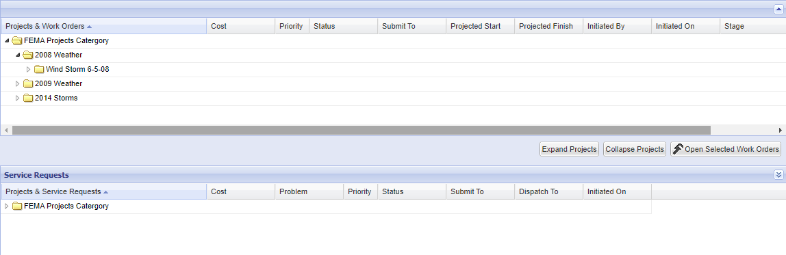 - Collapse Projects: Click to collapse the list of work orders or service requests. You can also click the arrow next to the folder to collapse the list.
