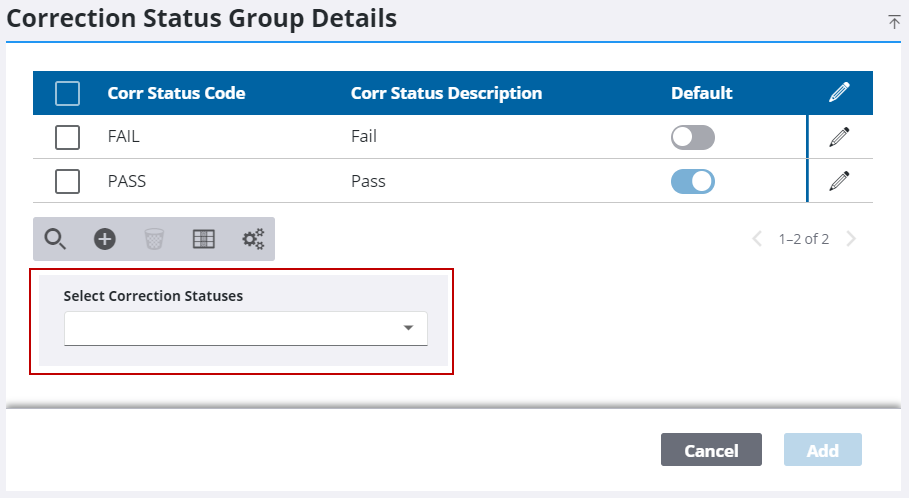 - Use the Select Correction Statuses drop-down list to select a correction status and click Add.