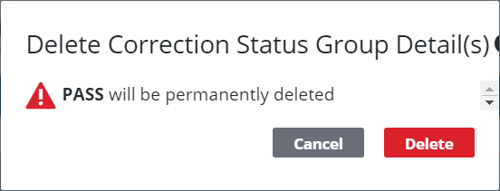 - On the Delete Correction Status Group Detail(s) panel, click Delete.