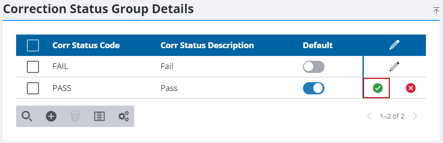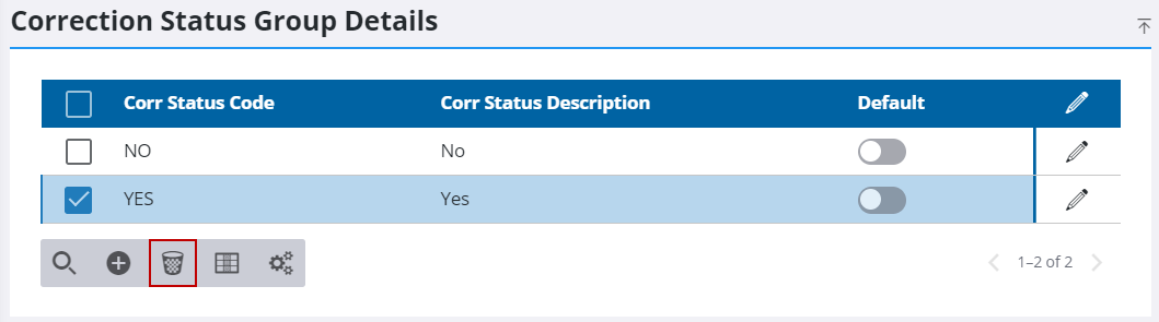 - To delete a correction status, select the status you want to delete on the Correction Status Group Details panel.