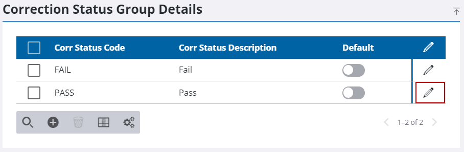 - On the Correction Status Group Details panel click Edit next to the correction status you want to update.