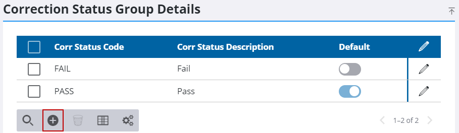 - To toggle the Default switch for a correction status within a correction status group, select the status group you want to edit.