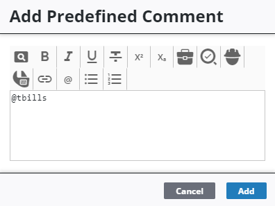 The user mentioned in the comment receives an email to alert them. A username with spaces included in it must be enclosed in quotation marks for it to work. For example, @"Cityworks Sam" would work.