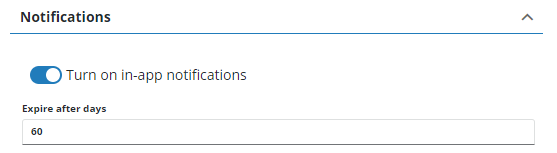 3. Enter a number in the Expire after days field to indicate how many days notifications will be stored before being automatically removed from the system.