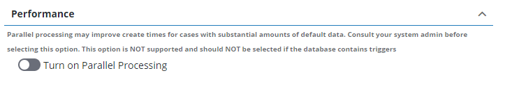 PLL administrators have the option to enable parallel processing, which can improve creation time for cases with large amounts of case data to process.