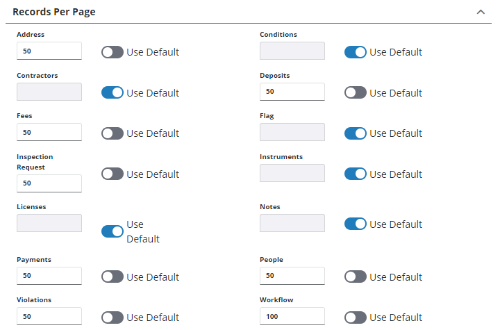 3. Optionally, turn on Use Default to display ten records per list page.