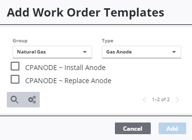 - Select a wok order from the list on the Add Work Order Templates panel. You can begin filtering the list by clicking Filter records and typing the first few letters of the work order template.