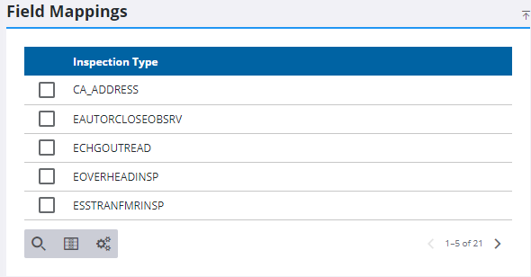 - Select the inspection in the Field Mappings panel to view its existing field mappings in the Details panel.