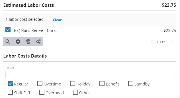 - Select the employee or contractor in the Estimated Labor Costs section to finish entering the Labor Cost Details.
