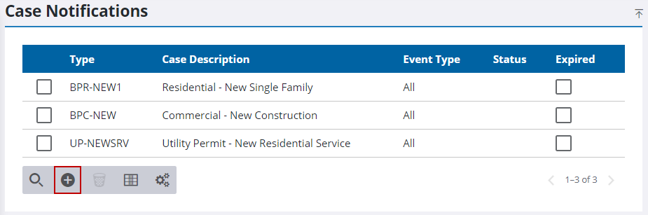 - Click Add record on the Case Notifications panel.
