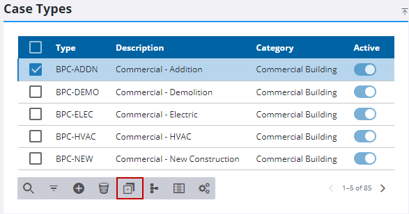 - On the Case Types panel, select the case type you want to clone and click Clone selected records.