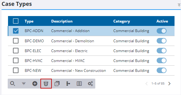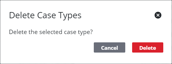 - On the Case Types panel, select the case type you want to remove, and click Delete selected records.