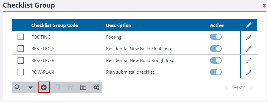 - In the New Checklist Group section, enter a Checklist Group Code and a Description.