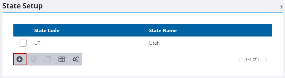- On the Add State panel, enter a two letter state abbreviation in the State Code field.
