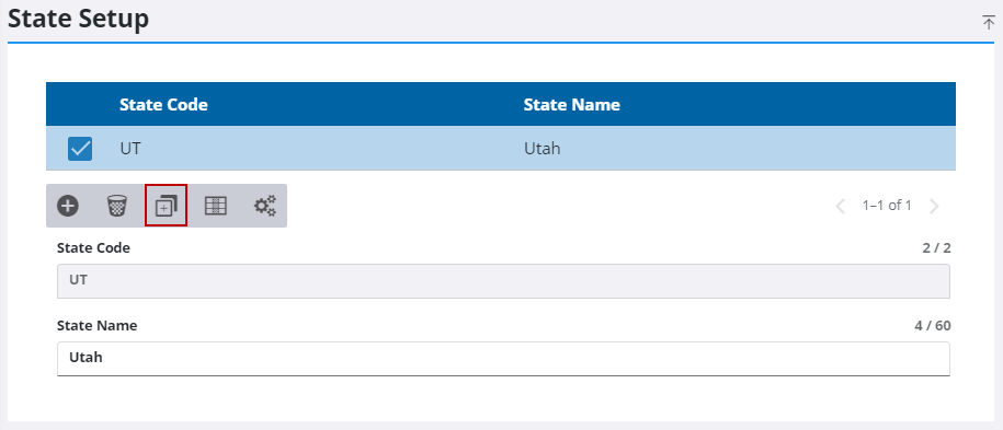 - On the State Setup panel, select the entry you want to clone and click Clone selected records.