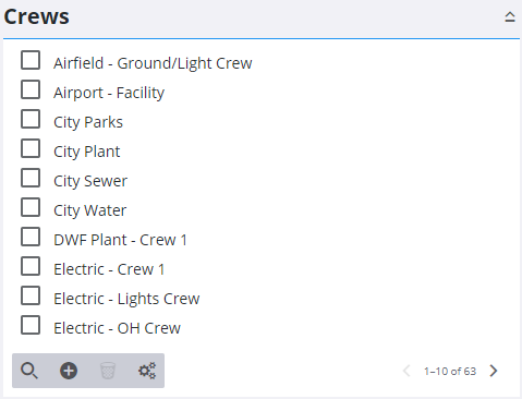 If some employees, equipment, and material are used together frequently for certain work activities, create a crew to quickly add them to a work order.