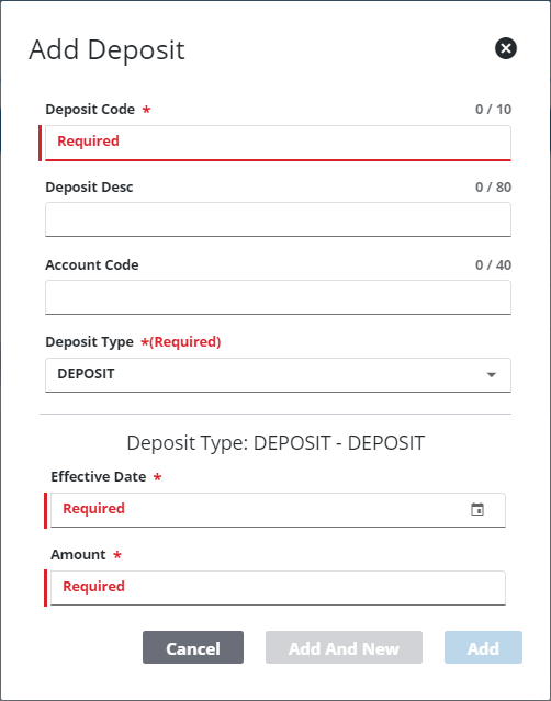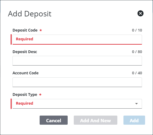 - Enter a 10-character (maximum) name in the Deposit Code field.