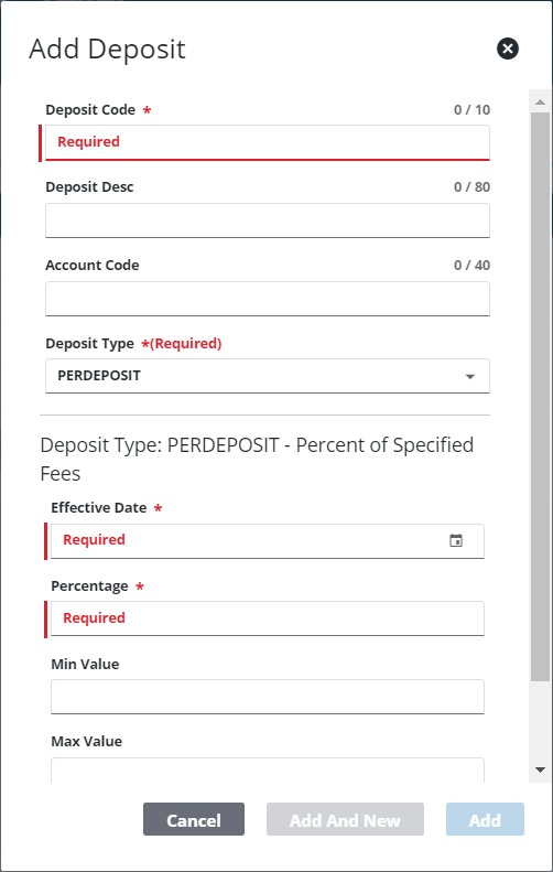 - In the Percentage field, enter the percentage that should be used to calculate the deposit amount.