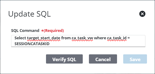 - Edit the SQL script if desired: click Update SQL, edit the script, click Verify SQL to confirm the accuracy of the code, then click Save.