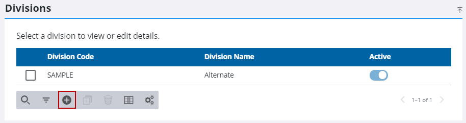 - On the Divisions panel, click Add record.