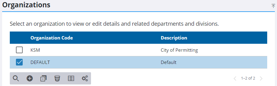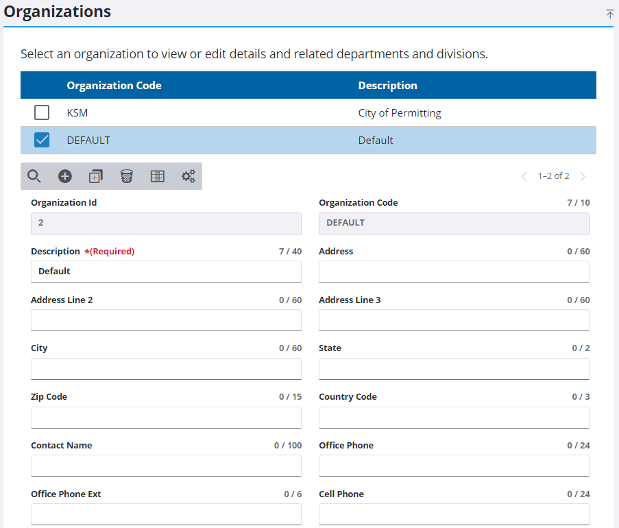 Existing organizations can be edited.