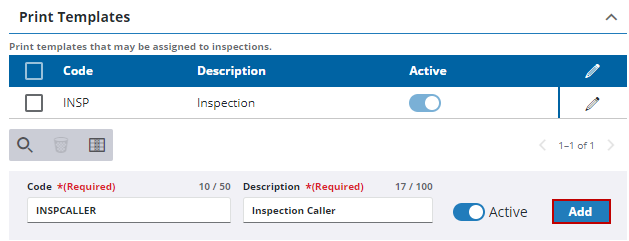 Once a print template is added, it needs to be associated to the desired inspection templates.