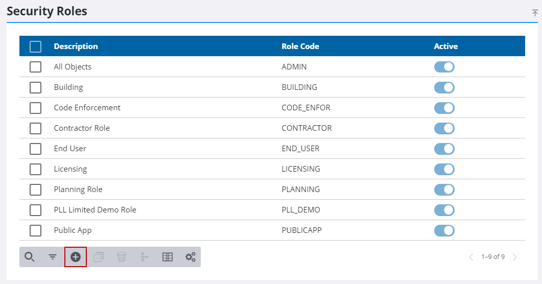 Adding a security role involves selecting all the security functions a user in the new security role will need in order to do their job. A complete description of the available security functions is available in Security Functions.