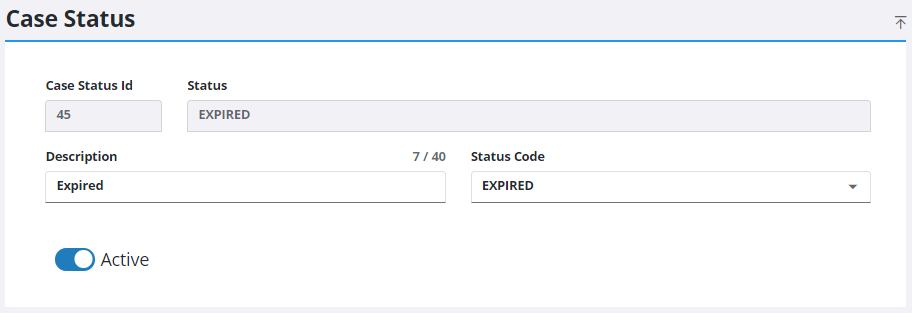 Existing status codes may be updated or changed at any time without having to create entirely new status codes to replace them. There are also a few fields that are only available on the Case Status panel.