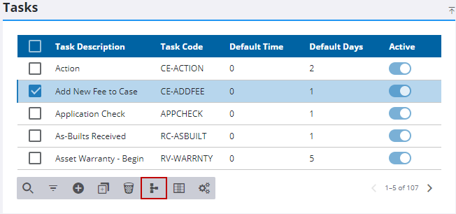 The Review Config panel shows what kind of other records reference the selected task. Click the arrow icon next to a record type to see which exact records reference the selected task.