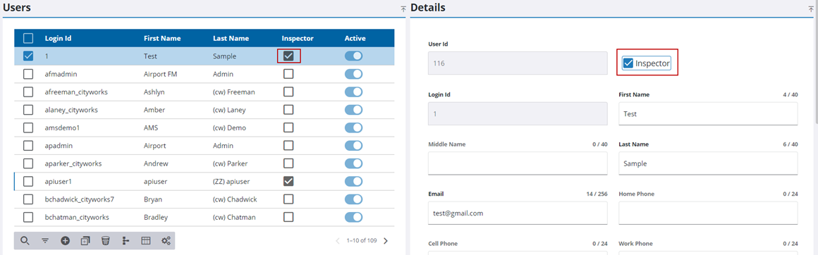 - Select the user you want to assign as an inspector.