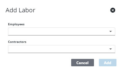 Employees and Contractors on the Add Labor panel can be filtered by typing the first few letters of the employee's or contractor's name in the search boxes.