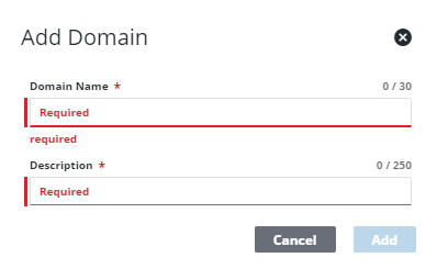 - Enter the Domain Name and Description of the domain and click Add.