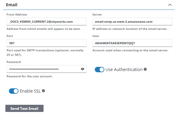 IMPORTANT: For Cityworks Online clients, if Trimble hosts your email server, do not update the From Address because it can cause issues with emails being sent or received.