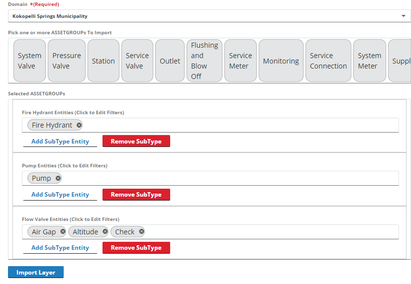 - Select the layer that serves as the asset type from the Pick a Layer to Import drop-down list.