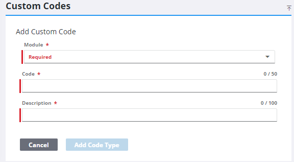 NOTE: To configure custom codes for use with Universal Custom Fields, select Others or Custom from the Module drop-down list.