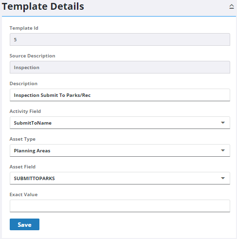 - Asset Type: Select the Asset Type that has the Submit To defined in the GIS.