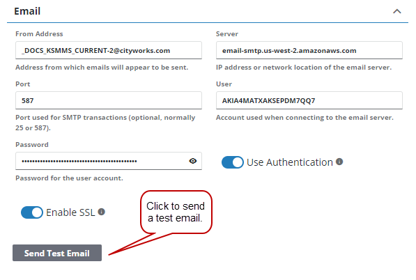 You can send a test email to ensure that your email configuration works.