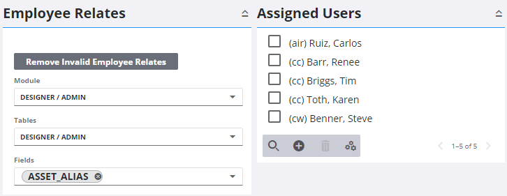 - To give employees access to the selected pages, click Add record on the Assigned Users panel.