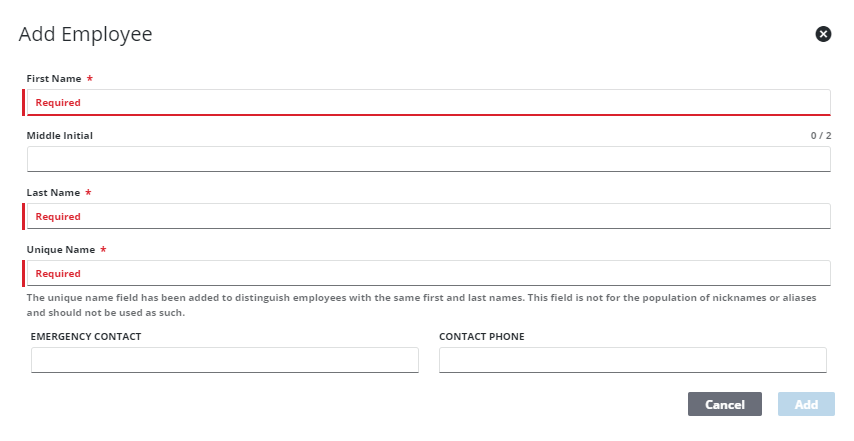 NOTE: The Unique Name is only used to differentiate between two people with the same name. Do not use the Unique Name to enter nicknames or preferred names.