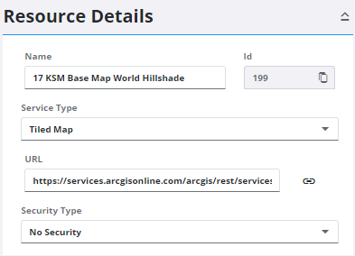 - Select the new resource from the Service Resources panel to finish entering the Resource Details.