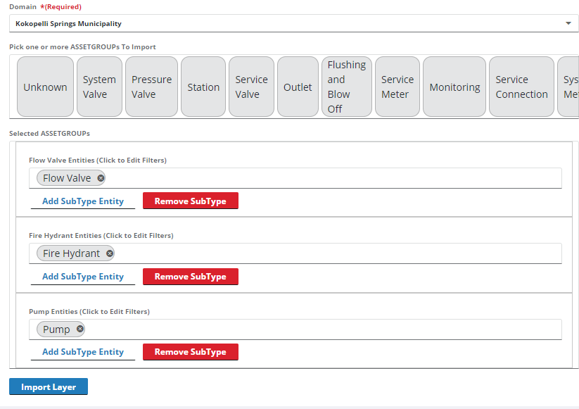 - Select the layer that serves as the asset type from the Pick a Layer to Import drop-down list.