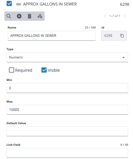 - In the Min field, enter the minimum value that a user can enter into this field on a work activity.