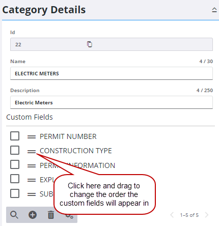 Once custom fields have been added to a category, they can be rearranged.