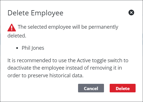 IMPORTANT: While it is possible to delete a contractor employee record, we strongly discourage you from doing so. Deleting a contractor employee record will cause errors for any users associated to that record.