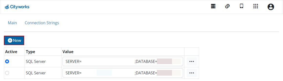 You can add a connection string, also known as a database, to link to your site. Multiple strings can be added, but only one string can be marked active at a time.