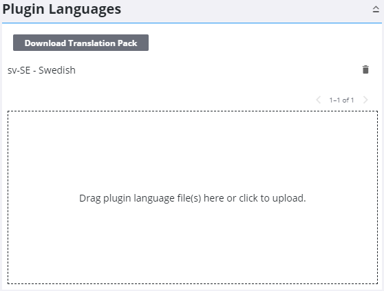 - Click the box at the bottom of the panel to browse to the zip file or drag the zip file and drop it where it says Drag plugin language file(s) here or click to upload.
